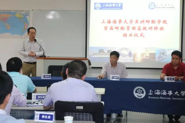 图:作为以培养邮轮产业中高级经营管理人才为主要目的专门性学院,上海海事大学亚洲邮轮学院早在2016年8月开始面向中国邮轮业界开设定制化的“首届国际邮轮管理课程研修班”。上海海事大学亚洲邮轮学院秘书长程爵浩主持研修班结业仪式。