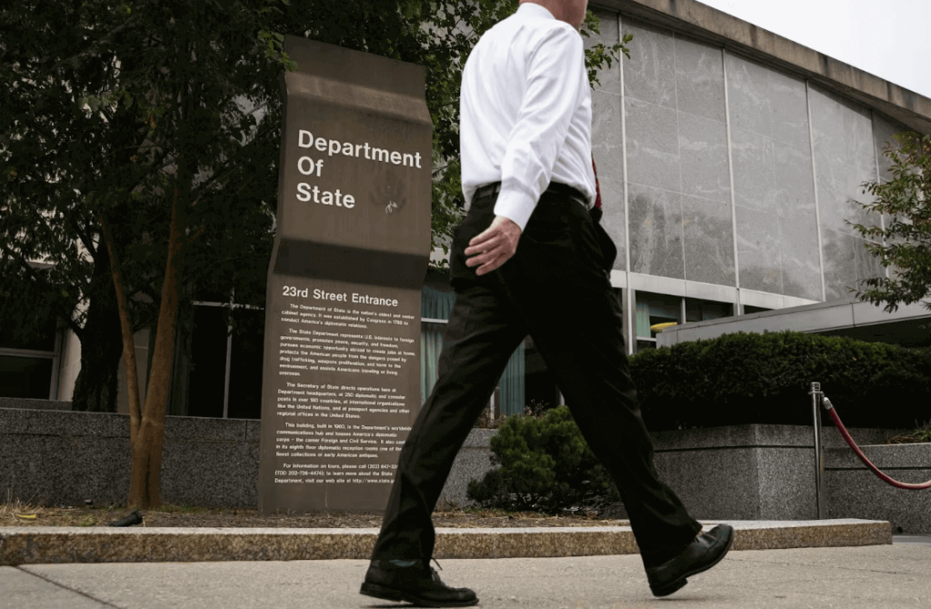 A pedestrian passes in front of the US State Department headquarters in Washington, D.C.Al Drago/Bloomberg