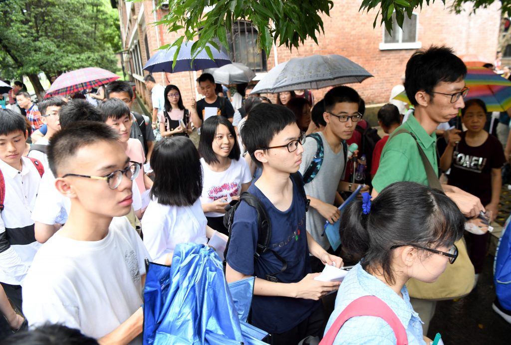 图:7月6日,中山大学2017年广东省综合评价录取招生面试在中山大学南校区举行。众多考生在家长陪伴下前来参加。王辉 摄