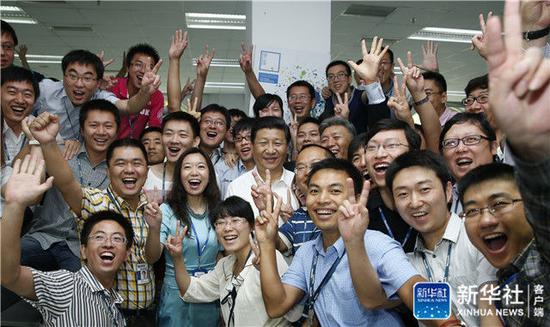 图:2013年8月29日,习近平在东软集团(大连)有限公司同年轻员工亲切合影。新华社记者 鞠鹏 摄