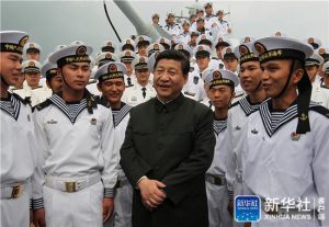 图:2012年12月8日,习近平在海军海口舰上与水兵亲切交谈。新华社记者 王建民 摄
