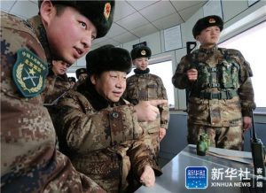 图:2014年1月26日,习近平专程来到内蒙古军区边防某部,亲切看望慰问戍边官兵。这是习近平仔细察看三角山哨所执勤设施,动情地对执勤哨兵说:“今天,我和你们一起执勤站岗。”新华社记者 李刚 摄