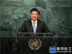 图:2015年9月28日,习近平在纽约联合国总部出席第70届联合国大会一般性辩论并发表题为《携手构建合作共赢新伙伴 同心打造人类命运共同体》的重要讲话。新华社记者 庞兴雷 摄