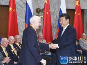 图:2015年5月8日,习近平在莫斯科会见曾在中国东北抗日战场上和卫国战争中浴血奋战的18名俄罗斯老战士代表。在为老战士颁奖时,习近平看到对方腿脚不便,马上说:“我过去给您颁奖,您就别过来了。”新华社记者 张铎 摄