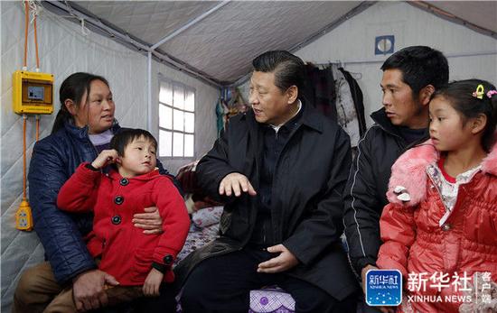 图:2015年1月19日,习近平来到云南省鲁甸地震灾区过渡安置点看望受灾群众。新华社记者 鞠鹏 摄