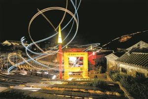比如,这次赛事的举办地点在古北水镇司马台长城,DCL的赛道专家特意利用剧场建筑的落差,设计了一个高低错落、迂回曲折的赛道,全长380米,模拟长城的巍峨蜿蜒。飞手们必须操控无人机在起飞后立即迅速攀升,掠过城墙和树木、穿越障碍气门、绕过障碍杆,最终穿过狭小的终点门撞网冲线。