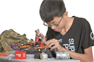 记者在一间教室里见到了正在认真检查“战机”,瘦高黝黑的19岁“海浪”李坤煌。这个戴着眼镜有些书生气的孩子,在交谈中展现了与年龄不相符的冷静。虽然高考成绩并不理想,但他对记者表示,走入无人机竞速圈让他的人生多了另一种选择,而带队教练告诉记者,李坤煌已经是许多赞助商的争抢对象。